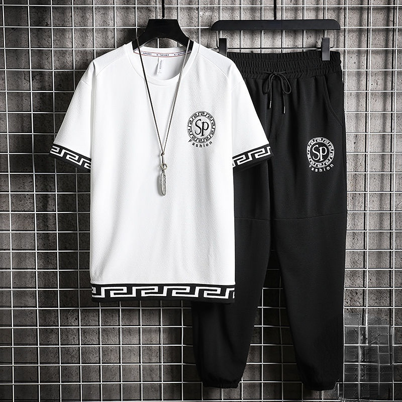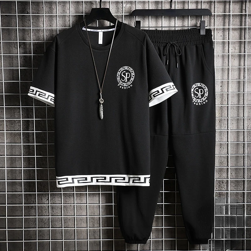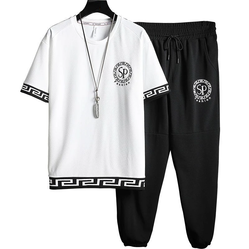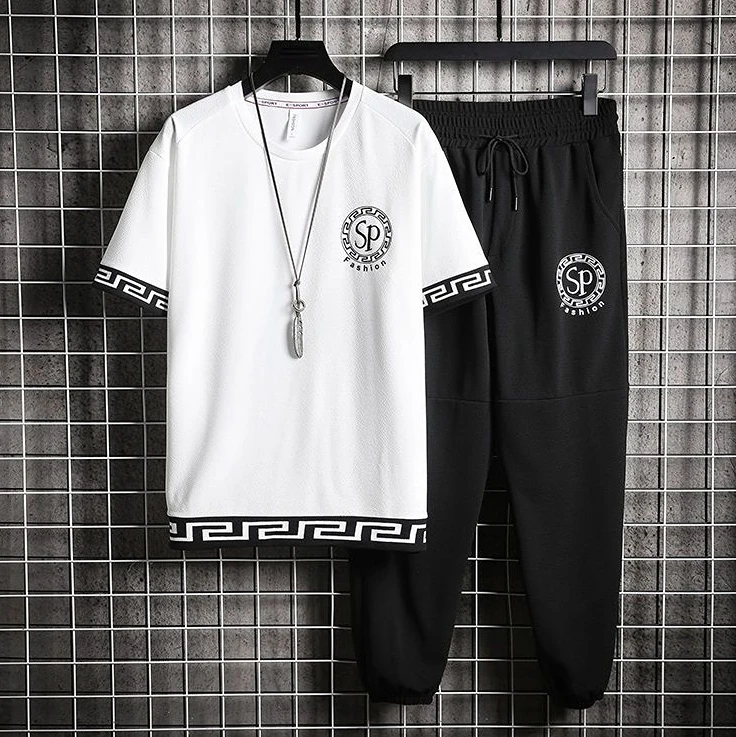 Pants Sets Kpop Chic Clothes for Men Top Slim Fit Casual Stretch Basic Cool Male T Shirt Summer Sweatshirt Sportswear 2025 Trend