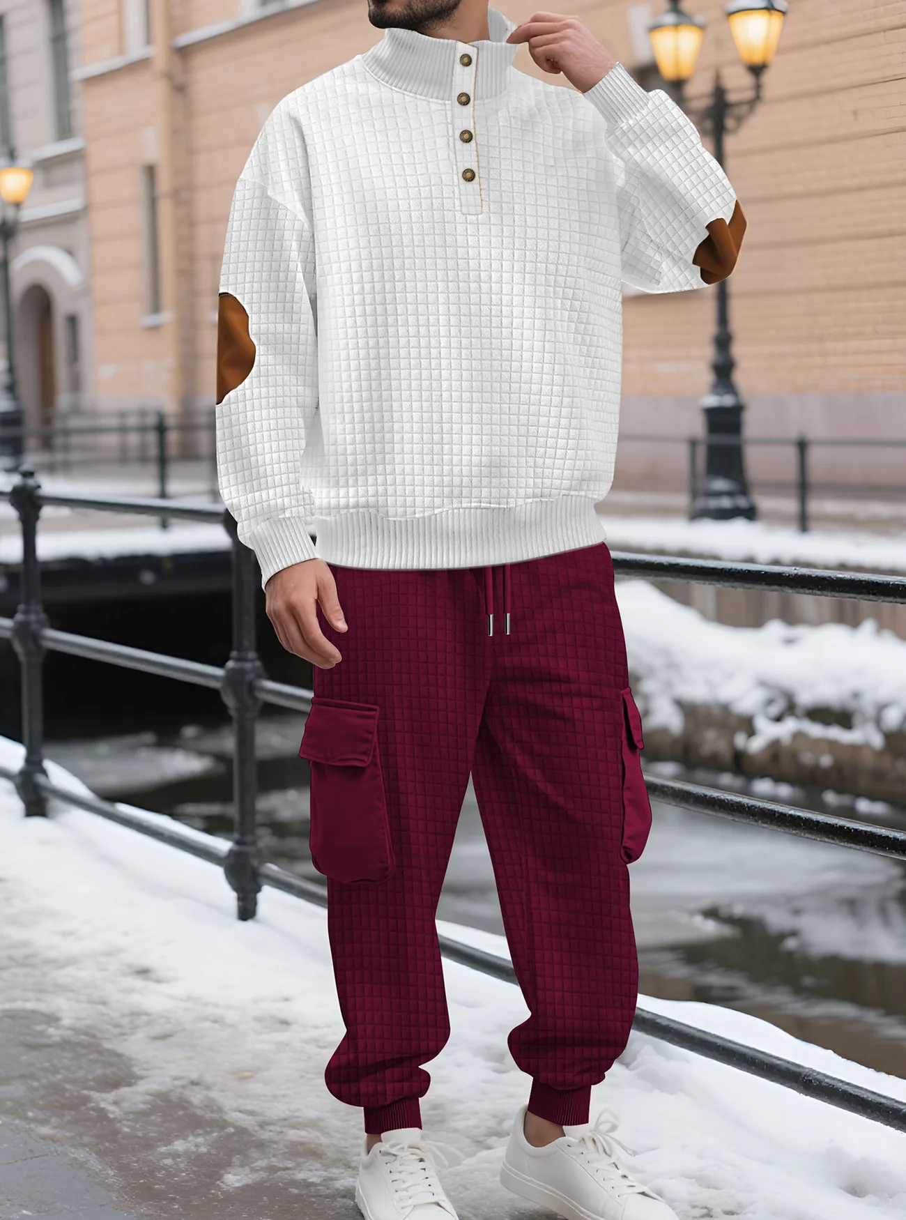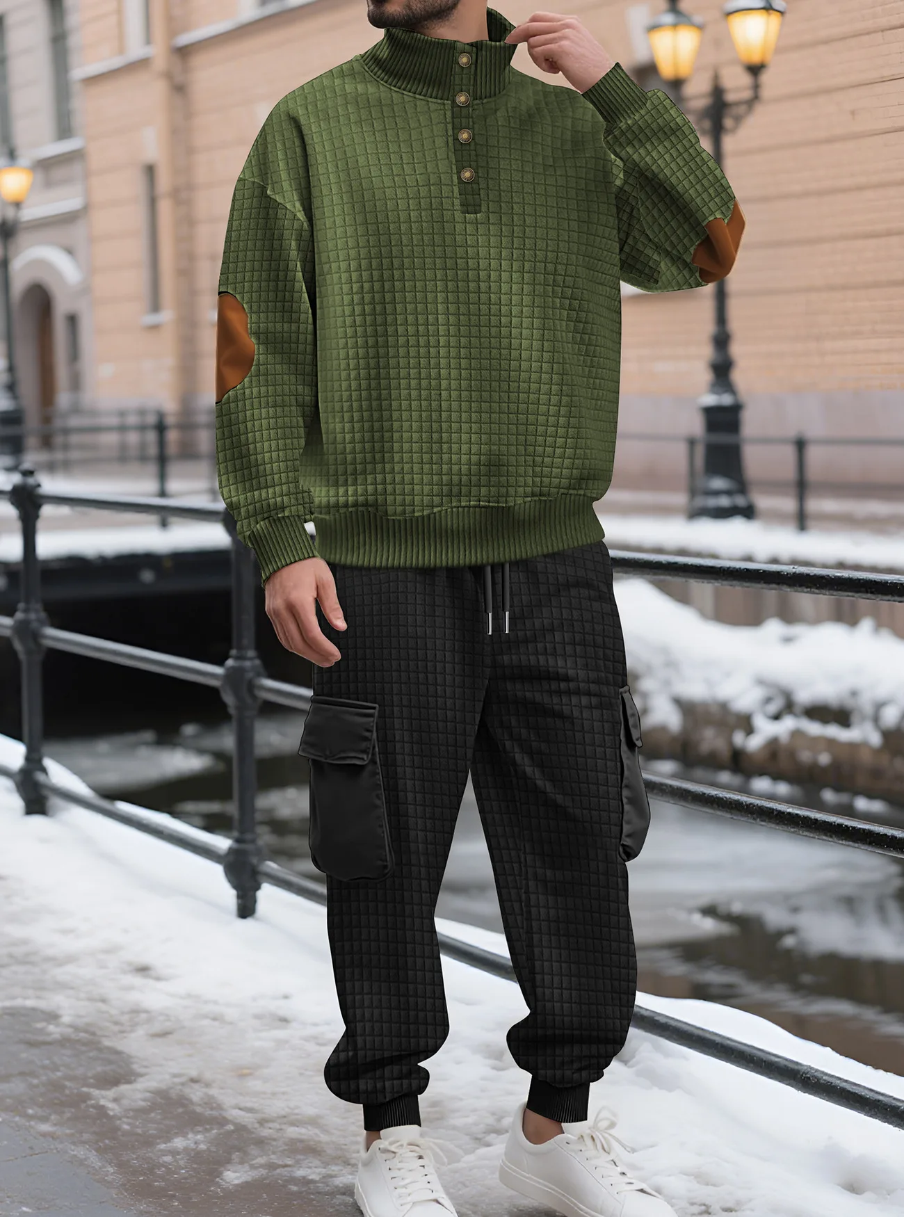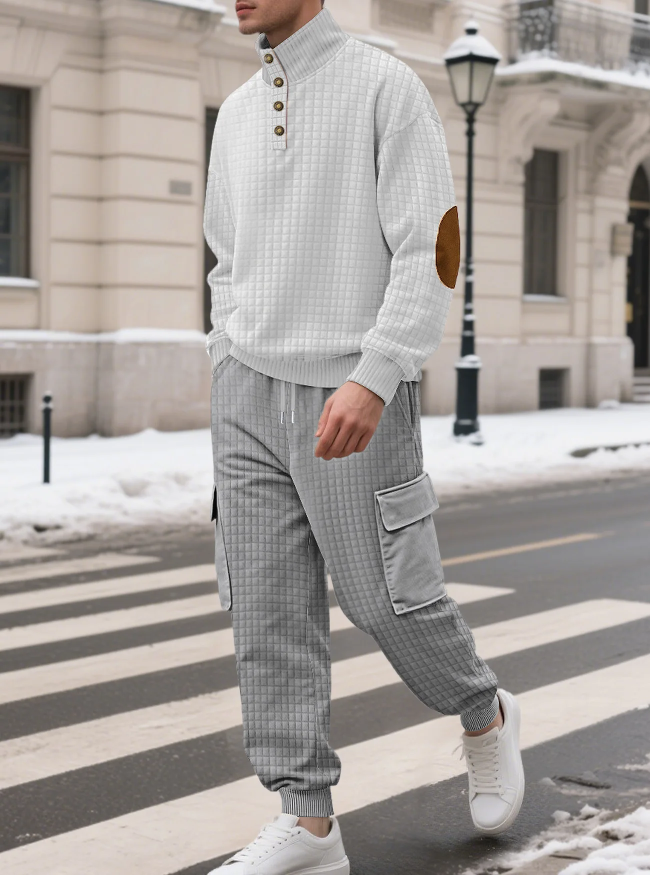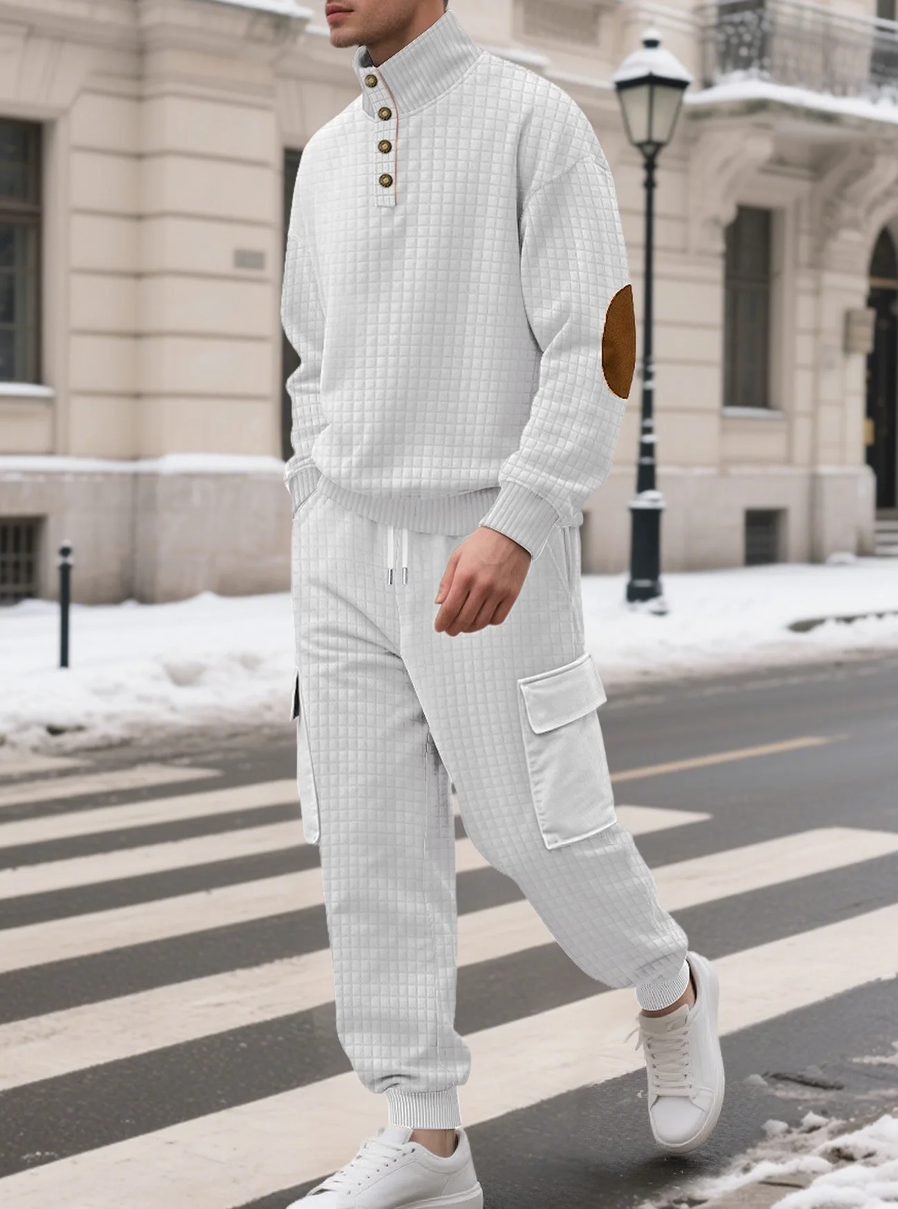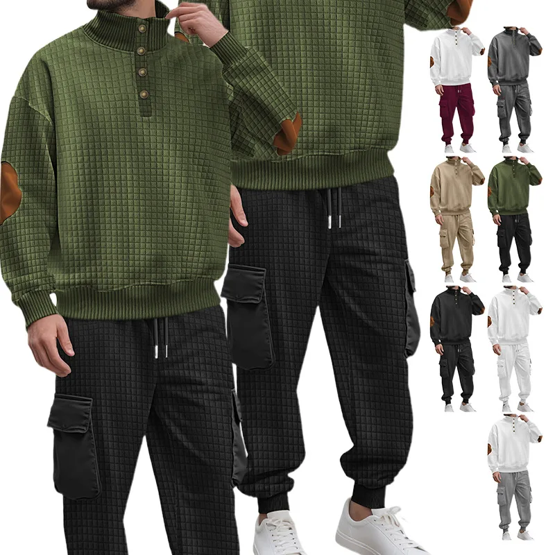 Featuring a trendy plaid pattern and button-up hoodie, this set combines sporty and business casual styles seamlessly.