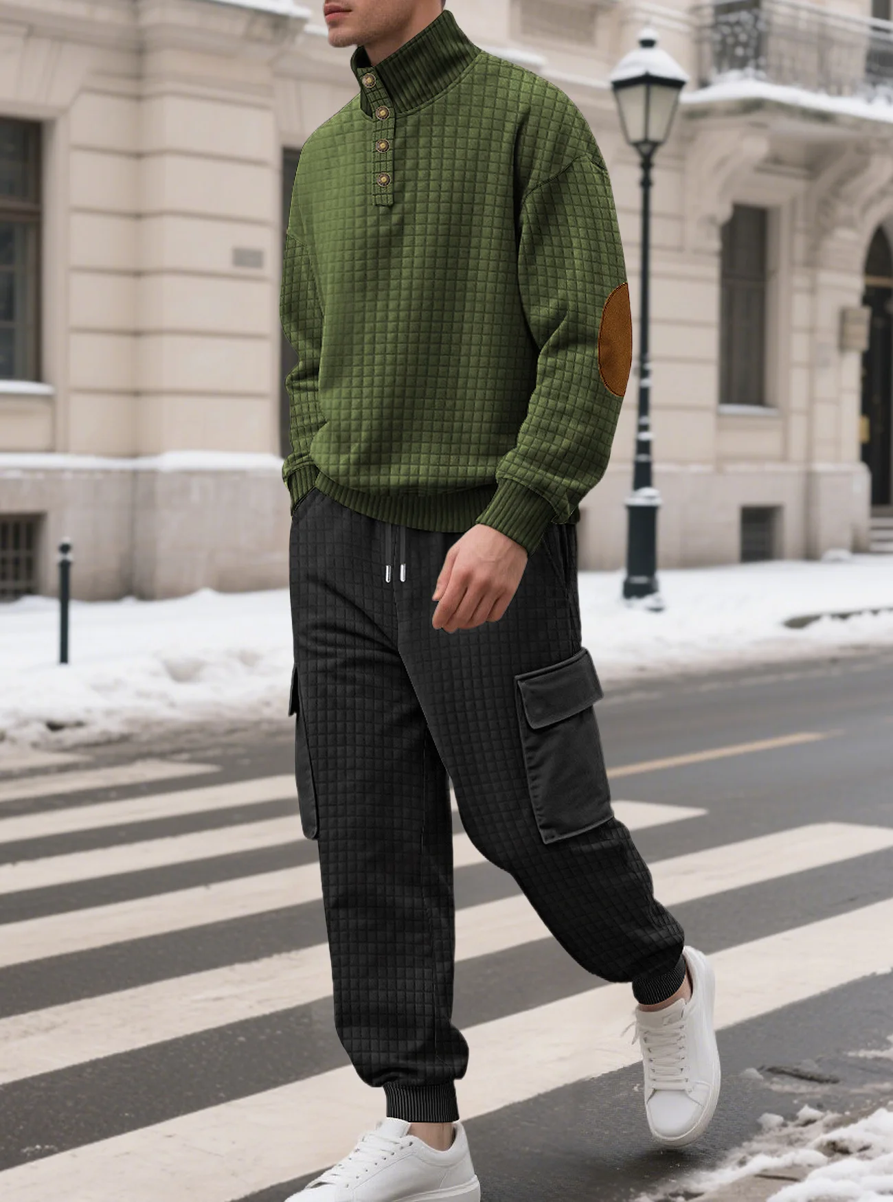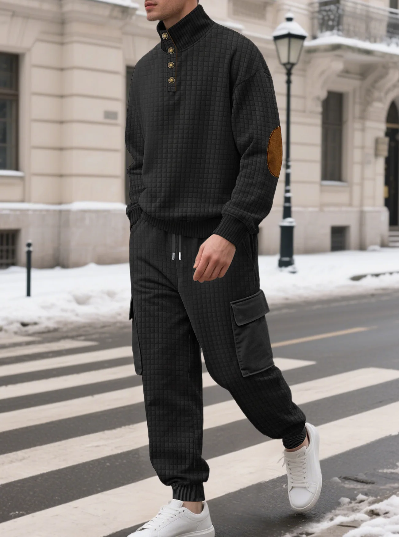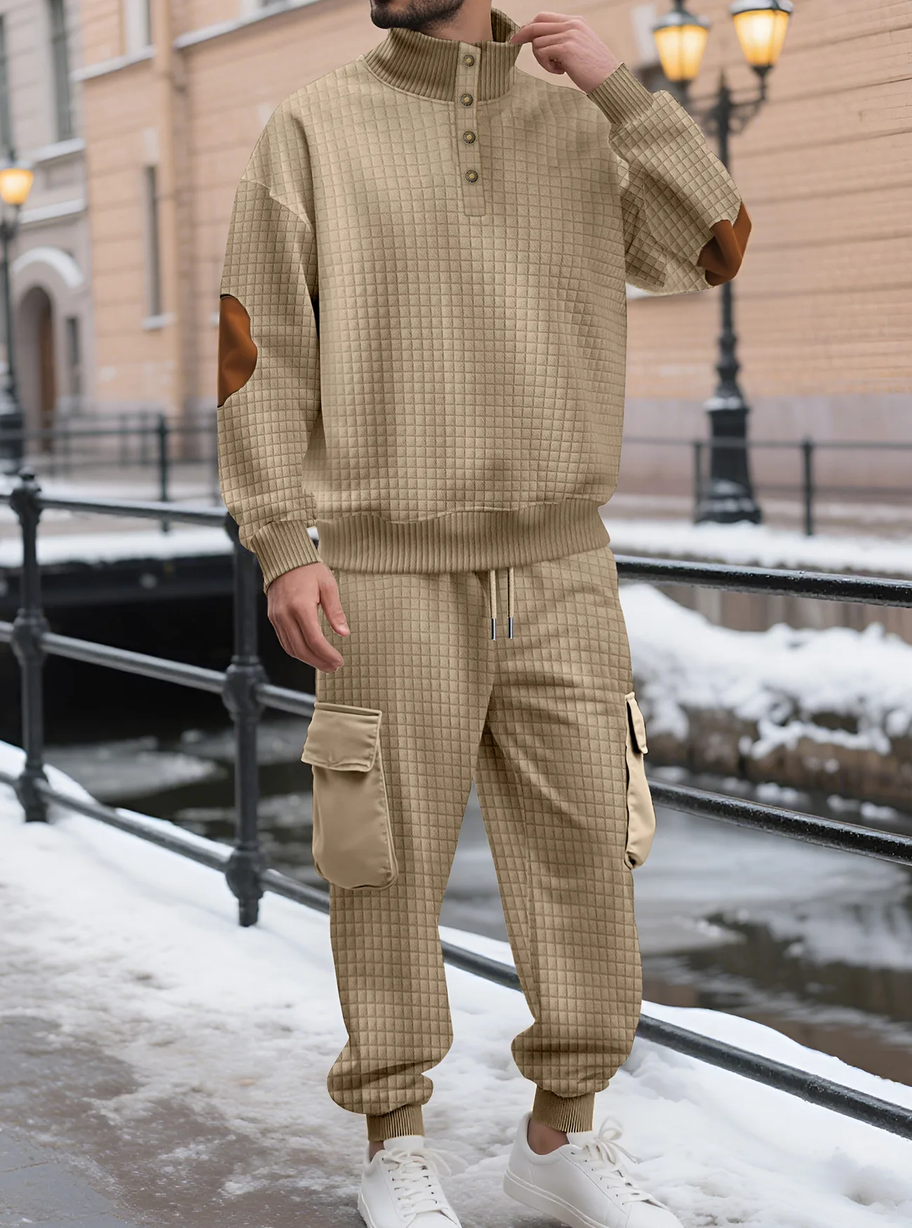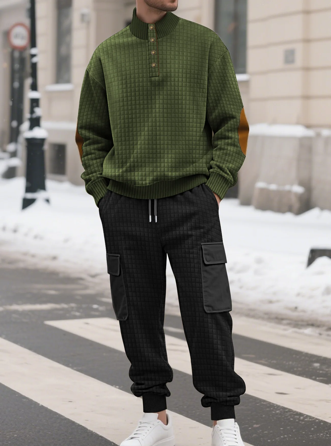 Featuring a trendy plaid pattern and button-up hoodie, this set combines sporty and business casual styles seamlessly.