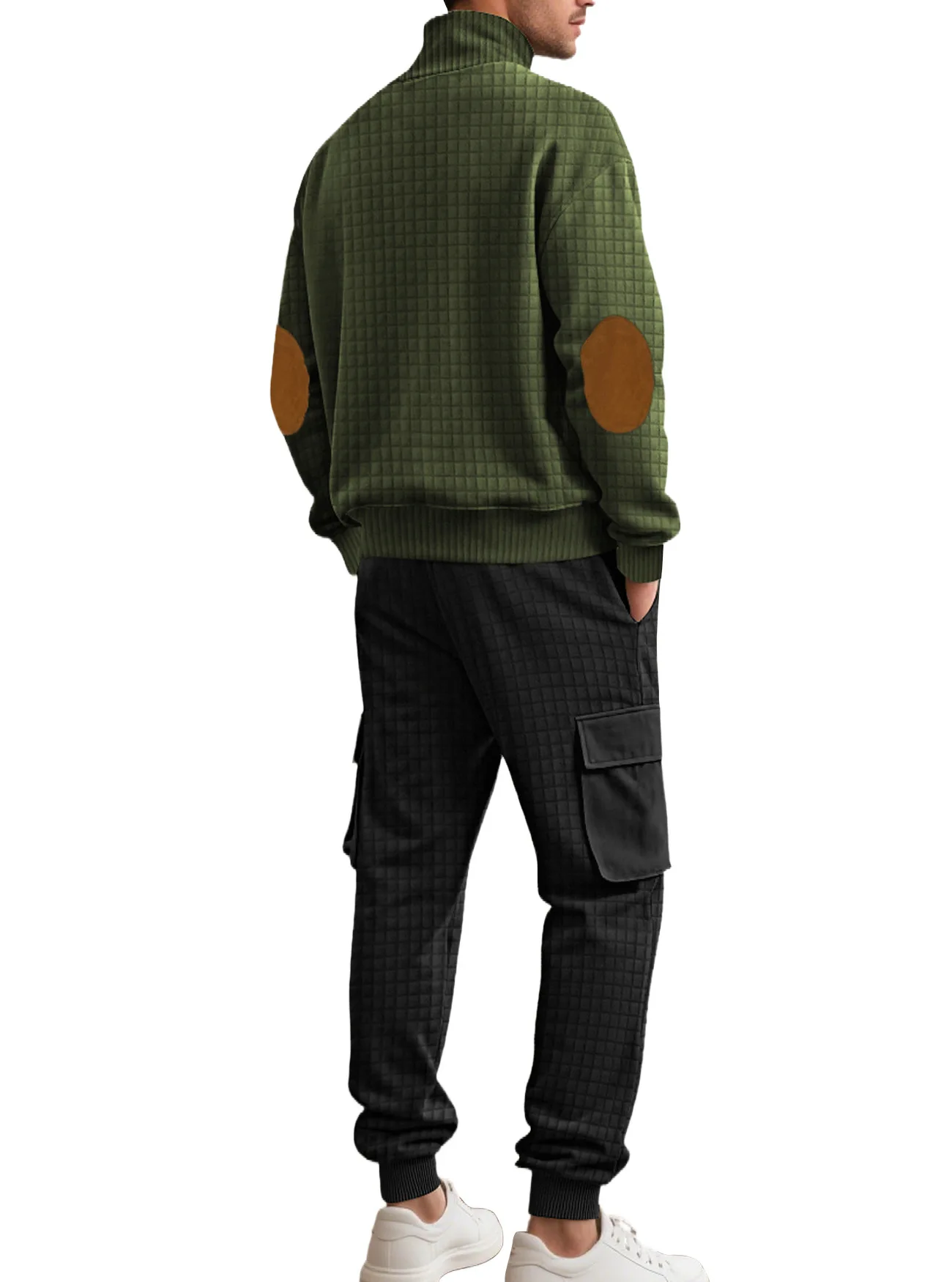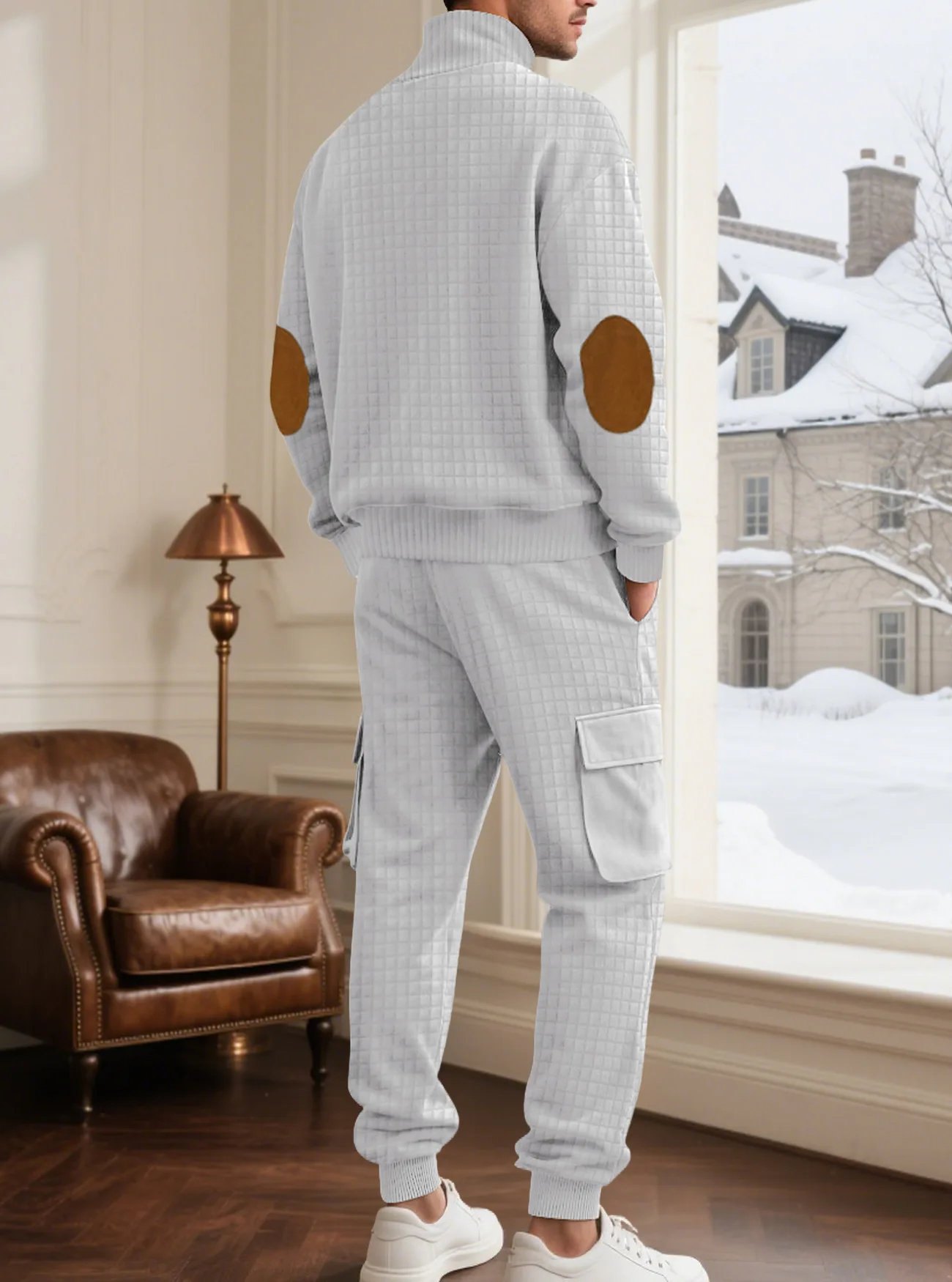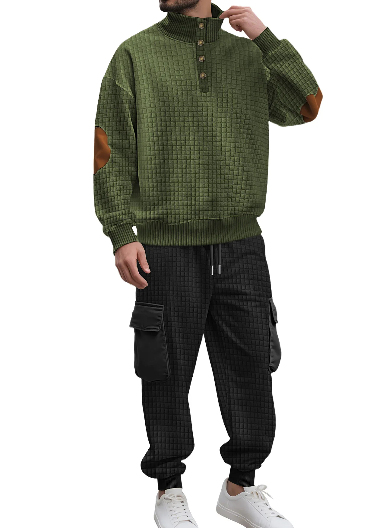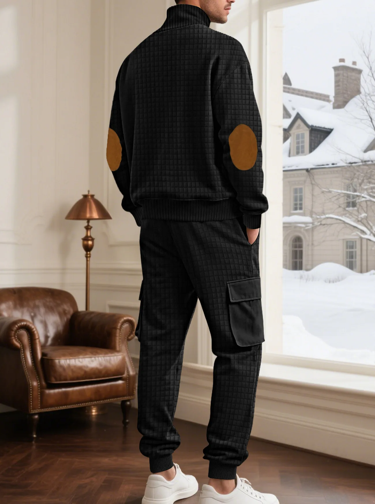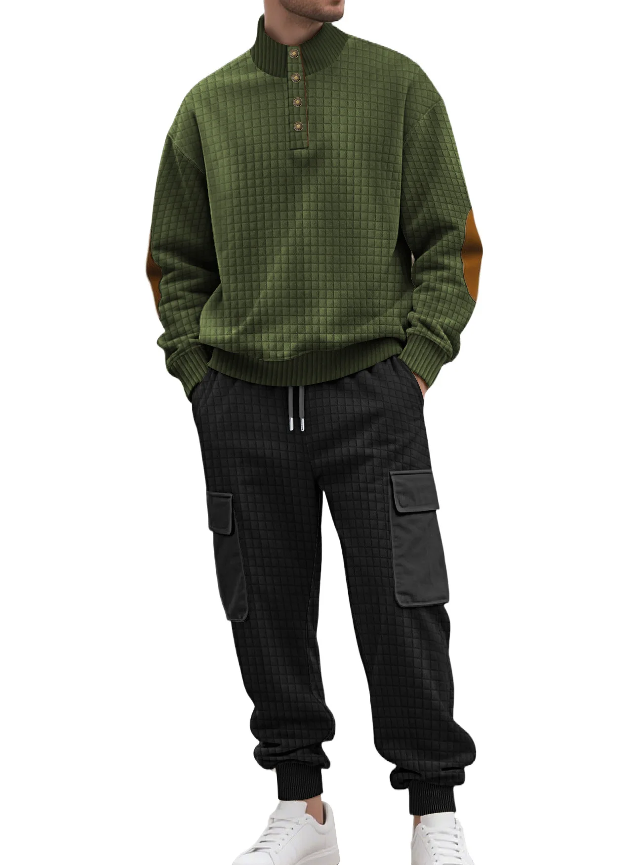 Featuring a trendy plaid pattern and button-up hoodie, this set combines sporty and business casual styles seamlessly.