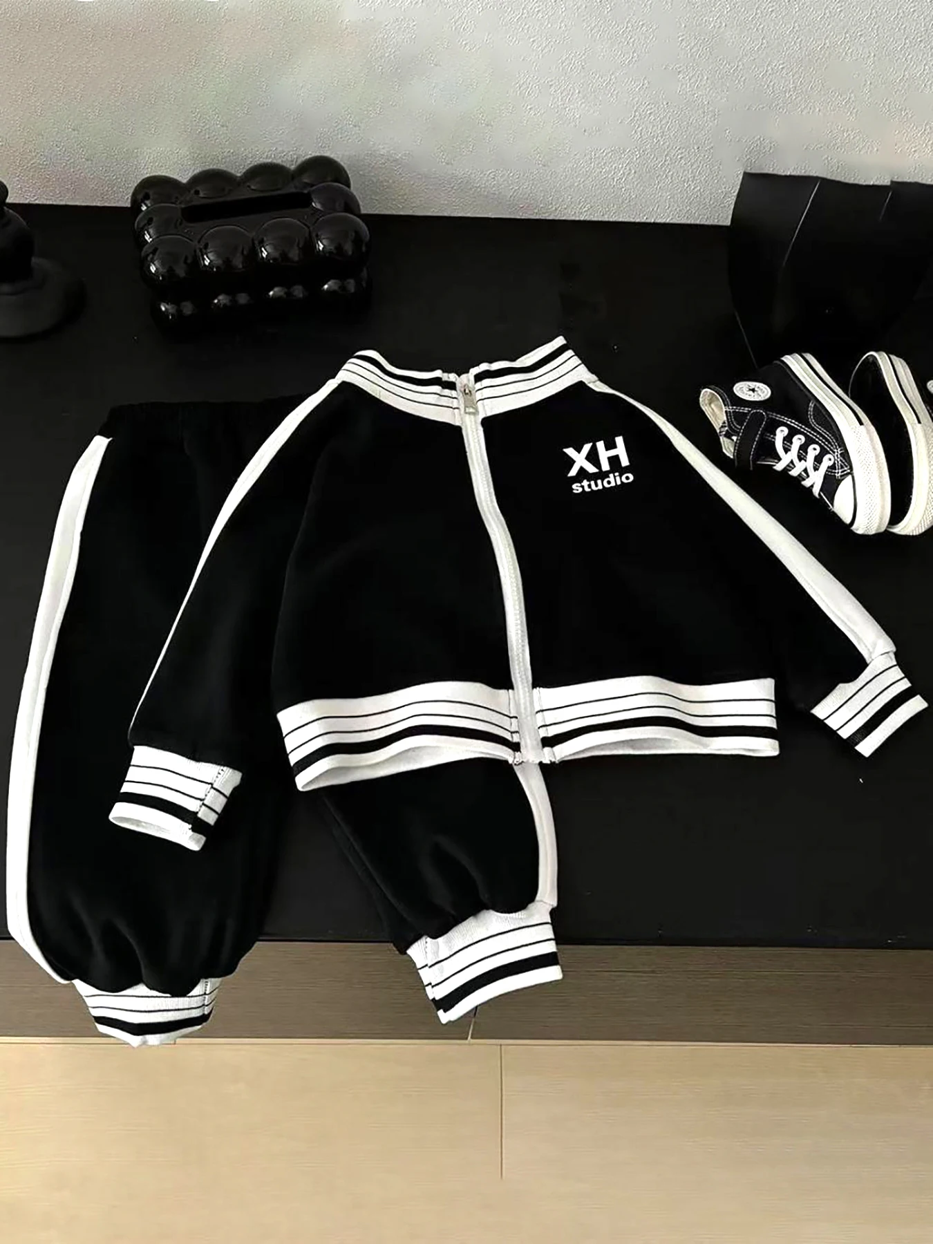Men and Women Children Zipper Coat Set - Spring/Autumn New Style Children's Baby Pullover Coat and Casual Pants Set Trendy